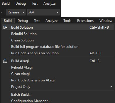 To build the tool, open the **Source** folder in [Visual Studio](https://visualstudio.microsoft.com/). This should open the "Akagi" project which you can build in Release mode for x64 architecture: